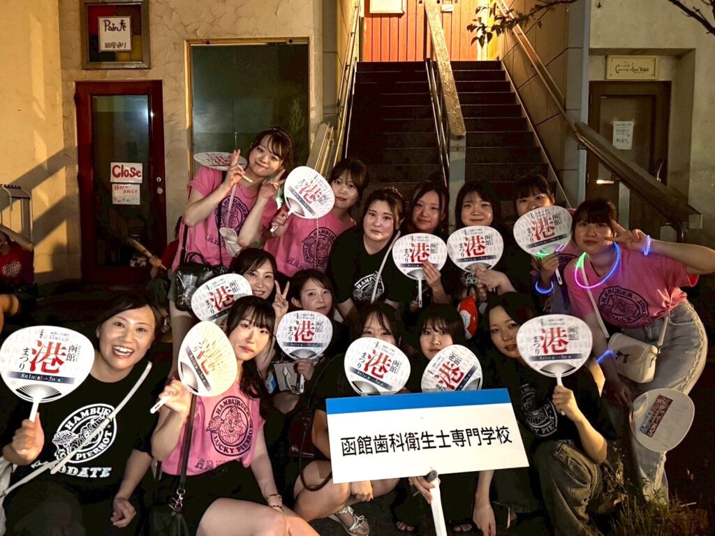 HOMEお知らせUncategorizedいか踊りに参加しました! いか踊りに参加しました! Uncategorized 2025.08.08 いか踊りに参加しました! 函館の夏の風物詩「いか踊り」は、市民が一体となって踊るユニークなお祭り!「いか、いか、いか踊り〜♪」の掛け声に合わせて、いかの動きを模した振り付けが特徴です。地元の誇りと楽しさが詰まった、函館ならではの伝統行事です! 当日は皆でおそろいのTシャツを着て、息を合わせながら楽しく踊りました😊 地域に根付いた文化を体感しながら、地元の方々との交流も楽しむことができ、笑顔あふれる素敵な時間となりました✨函館の夏を代表するイベントに参加できたことで、忘れられない思い出がまたひとつ増えました! share Uncategorized 仮歯づくりに挑戦! 2025.8.6 一覧表示 Uncategorized 夏季休業のお知らせ 2025.8.8