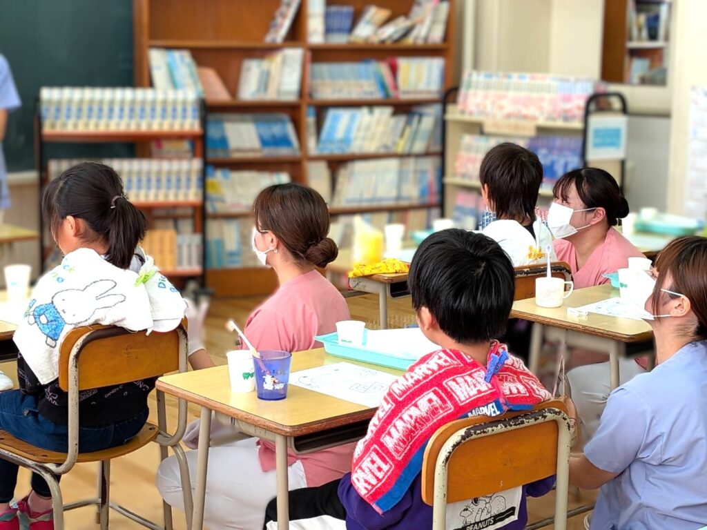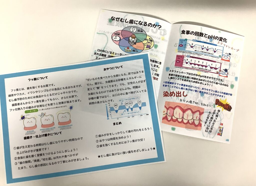 HOMEお知らせUncategorized小学校で歯みがき教室を行いました! 小学校で歯みがき教室を行いました! Uncategorized 2025.10.20 #topics 小学校を訪問し、むし歯の原因や正しい歯の磨き方についての講話と、個別での歯みがき指導を行いました。 個別指導では、歯の磨き残しを染め出してチェックし、一人ひとりに合った磨き方をアドバイスしました。 また、グループごとに工夫してリーフレットを作成し、児童のみなさんに配布しました! 活動を通じて、子どもたちに歯みがきの大切さを楽しく学んでもらうことができました🦷✨ share Uncategorized 第1期推薦・試験・社会人入学試験につい… 2025.10.9 一覧表示