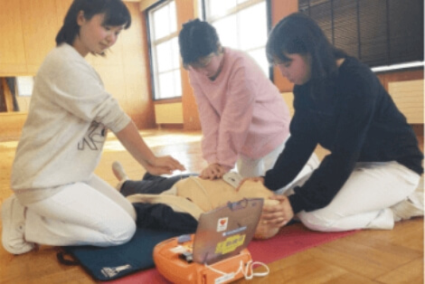 体位変換、車椅子への移乗等の介護時に必要な技術の他、高齢者とのコミュニケーションの取り方、応急手当・救命処置についても学びます。