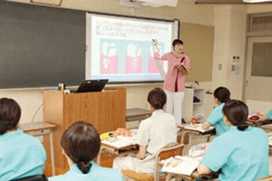 将来のキャリアバスを設計するために、現場で活躍している歯科衛生士を講師に招き、予育てと仕事の両立やキャリアアップについて講話していただくオムニバス形式の授業です。